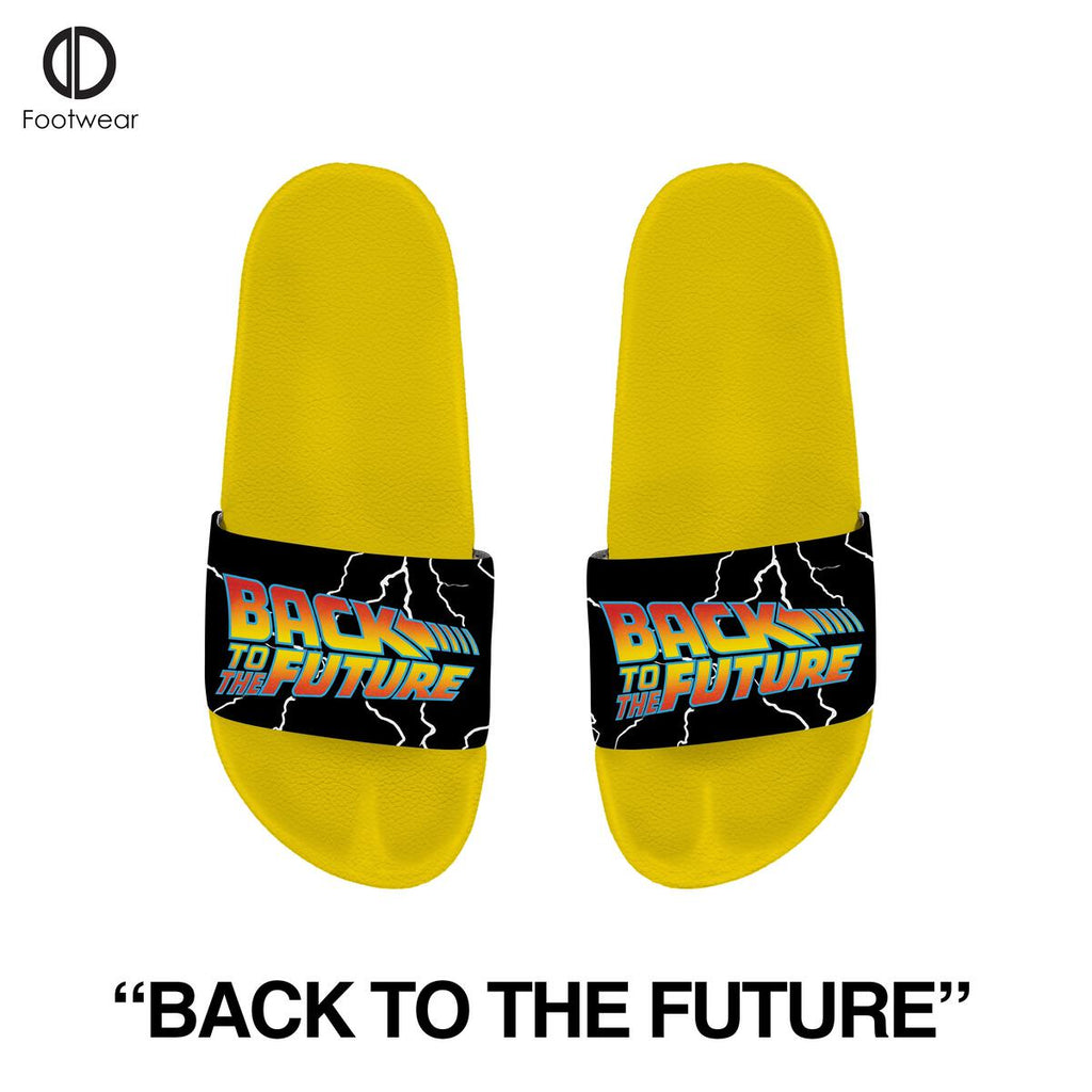 Gear it up to 88 in these Back to the Future slides. The yellow beach slides feature the iconic BTTF logo.