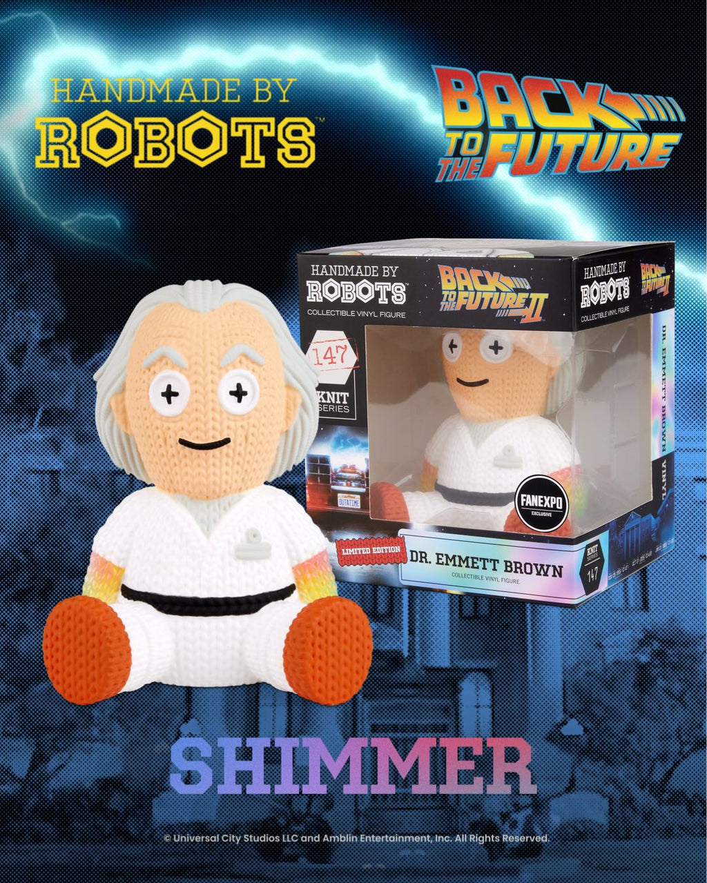 The robots present to you this preposterously adorable Dr. Emmett Brown vinyl figure as seen in Back to the Future Part II. This special limited edition variant features a shimmering hands detail.