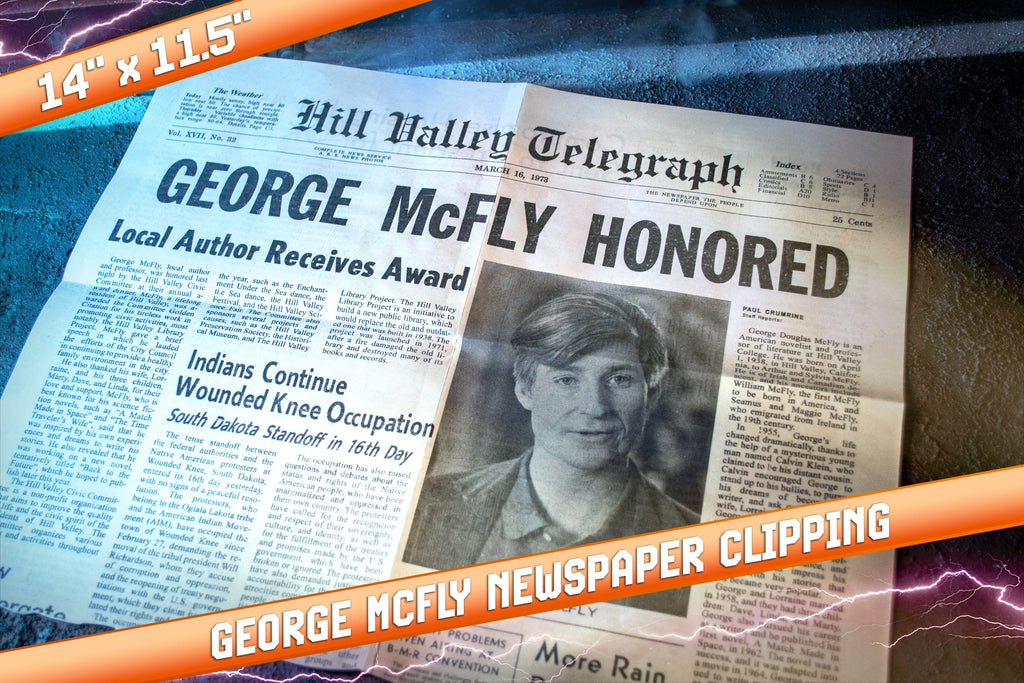 - Hill Valley Telegraph "George McFly Honored" 1973 newspaper clipping