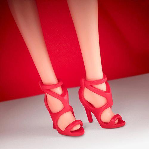 2022 HOLIDAY BARBIE: The 2022 Holiday Barbie Doll embodies the spirit of the season in a vibrant, red gown inspired by the beautiful poinsettia, a symbol of good will and community spirit. Her ensemble dazzles with a shimmering poinsettia detail at the neckline and a layer of tulle and satiny petals adorning her long, full skirt. Gorgeous, golden chandelier earrings and red lips complete her look.