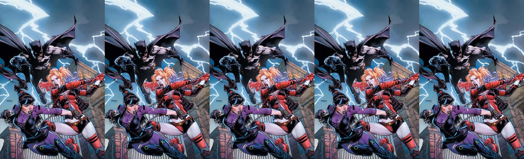 “The Joker War” part four of six! Batman is at his most vulnerable following a massive dose of an experimental new Joker toxin. With the Dark Knight haunted by demons and visions, it’s up to Harley Quinn to protect him while he recovers—because Punchline is on her way!