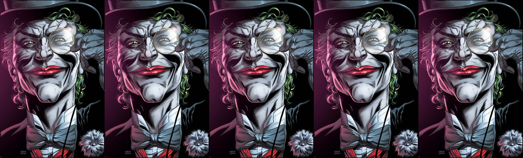 It's one of the most anticipated comic book stories of the decade: Batman: Three Jokers by Geoff Johns and Jason Fabok! Debuting in August, this three-issue Prestige Format DC Black Label series delivers the payoff to the years-long mystery of why - and how - there are three Jokers, and what that revelation means to the eternal conflict between Batman, his allies, and the Clown Prince of Crime. To commemorate this landmark series, DC offers retailers nine Premium Variant Covers for Batman: Three Jokers, each illustrated by series artist Jason Fabok. Along with the main cover and open-to-order variant cover, each issue of Batman: Three Jokers will have three Premium Variant Covers, showcasing Fabok's interpretation of a different face of The Joker's madness from throughout DC history. All nine of the Premium Variant Covers mirror Fabok's main covers for the three-issue series, giving a close-up look at even more of The Joker's terrifying incarnations.