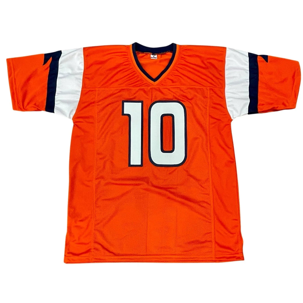 Show your love for the Denver Broncos with this Bo Nix autographed jersey! This custom jersey is orange with the number 10 and the Denver Broncos logo. Perfect for any die-hard Broncos fan, this jersey is a must-have collector's item.