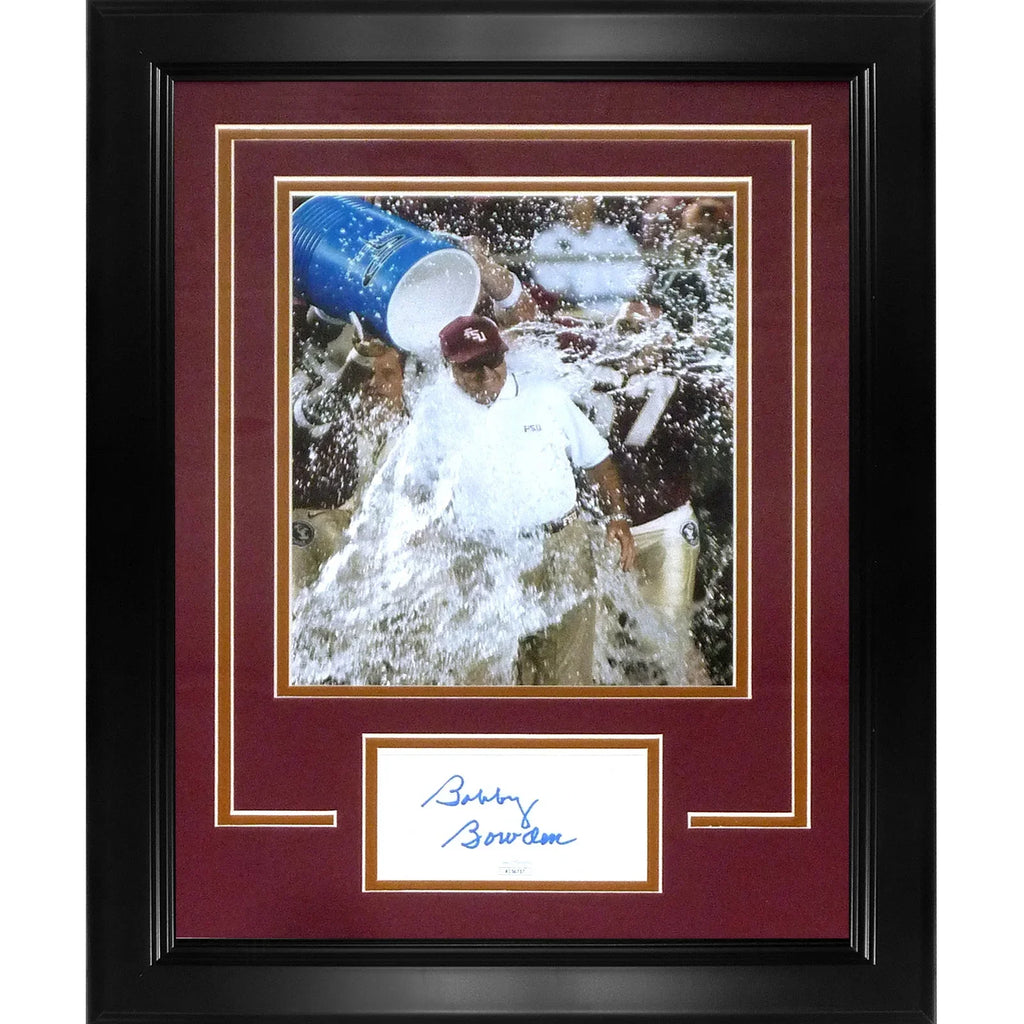 Celebrate the legendary coach, Bobby Bowden, and his unforgettable era with the Bobby Bowden Autographed Florida State Seminoles Gatorade Dunk "Signature Series" Frame. This exclusive collector's piece captures a defining moment in Seminoles history—the iconic Gatorade Dunk—signed by the legendary coach himself.