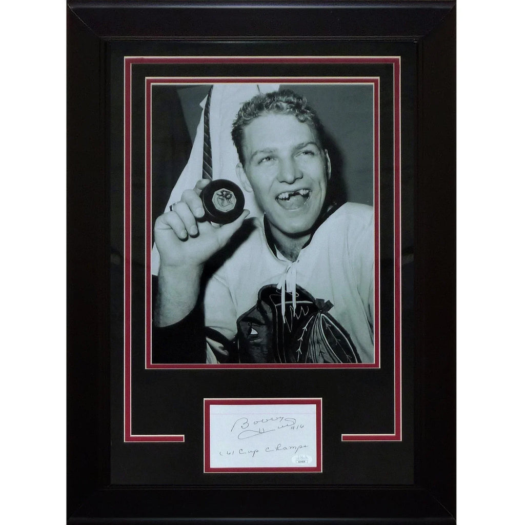 Get ready to showcase your love for the Chicago Blackhawks with this incredible Bobby Hull autographed 11x14 photo! Featuring the iconic 50th goal celebration, this "Signature Series" frame captures the spirit and passion of the game. Each autograph is authenticated by JSA, ensuring its value and authenticity. A must-have for any passionate fan!