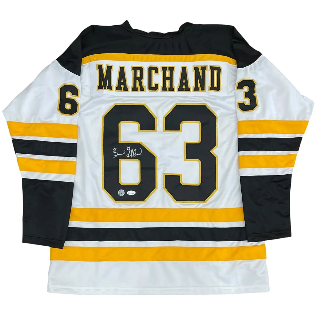 Own a piece of hockey history with this autographed Brad Marchand Boston Bruins custom jersey! The legend's signature adds value to this custom white jersey. Bring the thrill of the game into your home with this unique collector's item. It is authenticated by JSA as well as the official Brad Marchand hologram.