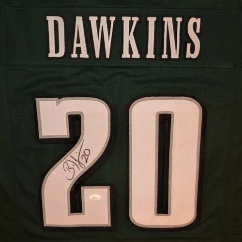 Own a piece of Eagles history with this Brian Dawkins autographed Philadelphia custom jersey in iconic green with his #20. Authenticated by JSA, this collectible showcases the signature of one of the most feared safeties in NFL history. Perfect for displaying in your sports memorabilia collection or giving as a gift to the ultimate Eagles fan.