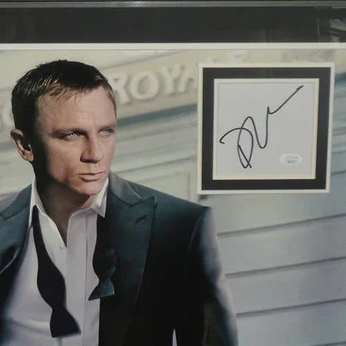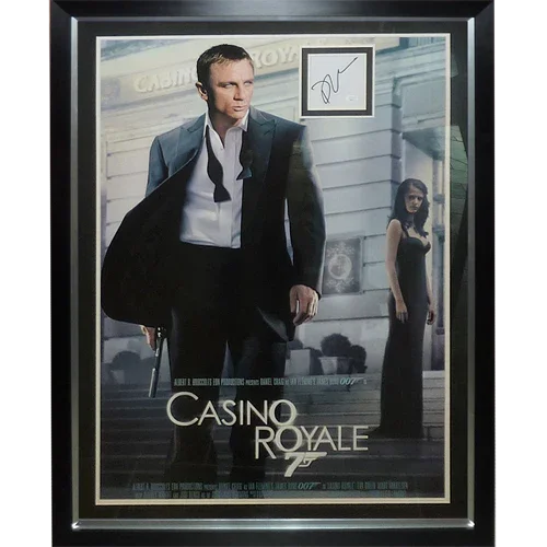 Own a piece of cinematic history with our deluxe framed Casino Royale movie poster! This full-size poster features Daniel Craig's iconic autograph and comes with JSA authentication. Display it proudly in your home and relive the thrilling action and sophisticated style of the James Bond classic. Total frame dimensions are 34x44.