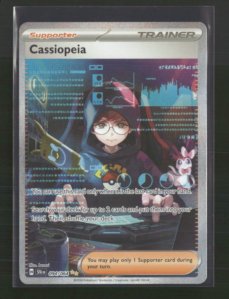 Card Number: 094/064 Category: Collectible Trading Cards Condition: Near mint or better Player/Character: Cassiopeia Set: SV: Shrouded Fable Type: Collectible Card Game Year: 2024 Game: POKEMON