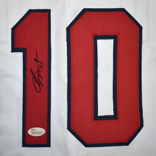 Capture a piece of baseball history with this autographed Chipper Jones Atlanta #10 custom jersey! Hand-signed by the legendary player, this jersey proudly displays his signature authenticated by JSA. A must-have for any fan or collector, this jersey is a true treasure.