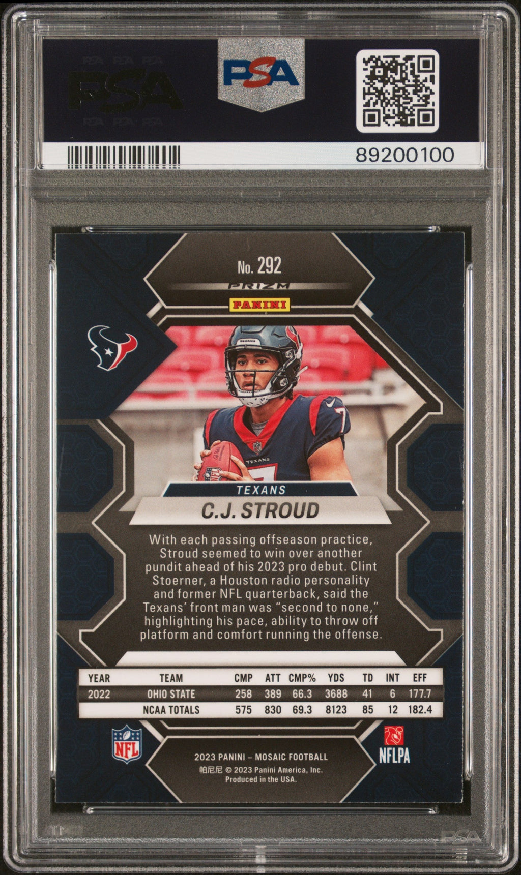 Card Number: 292 Category: Collectible Trading Cards Condition: Mint Set: 2023 Panini Mosaic Type: Sports Trading Card Year: 2023 Grade: PSA 9 Certification #: 89200100