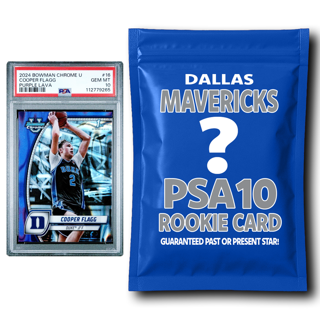 You're guaranteed to pull one of the following PSA 10 graded rookie cards of a past or present Dallas Mavericks star! Featuring Cooper Flagg, Luka Doncic, Dirk Nowitzki & More!