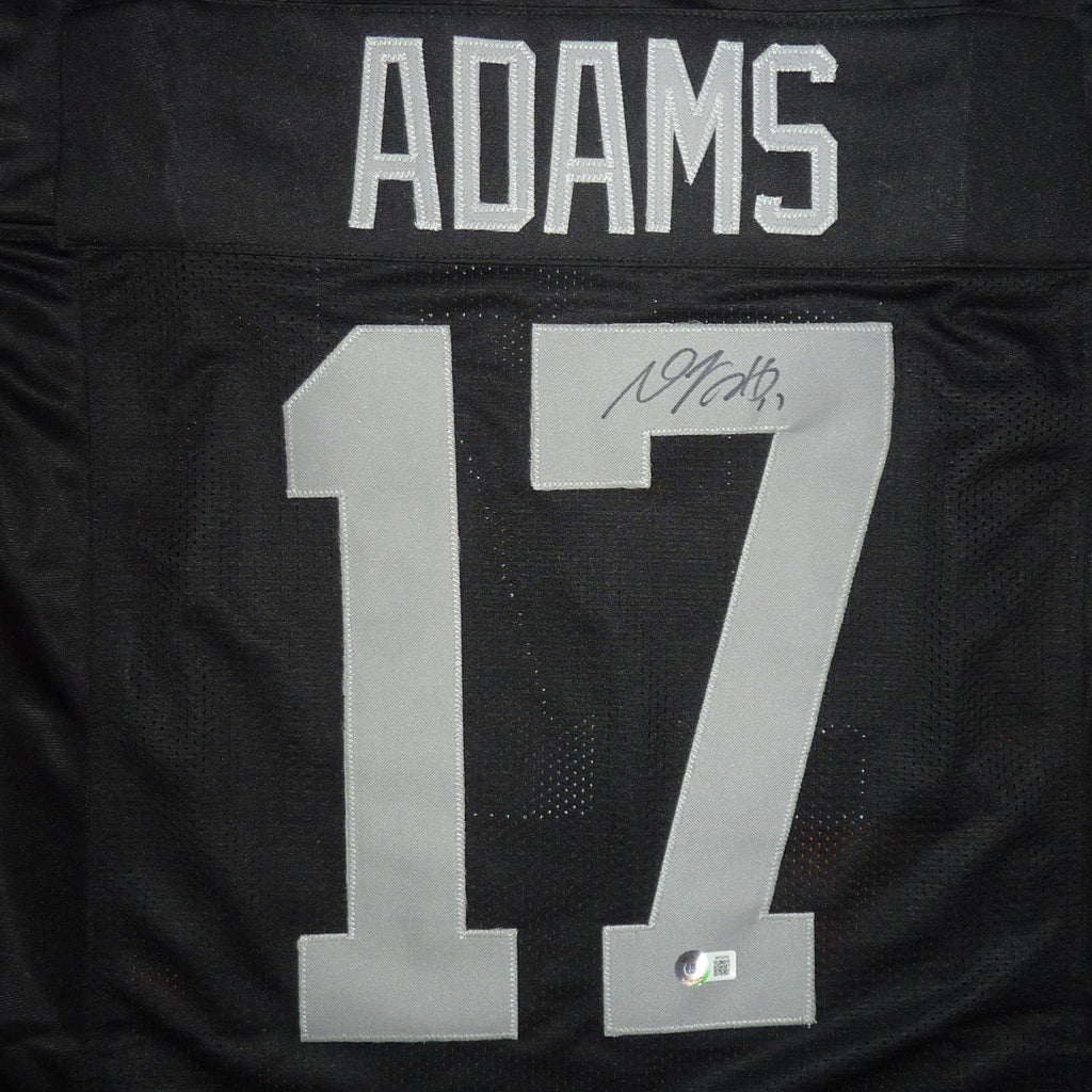 Own a piece of sports history with this Davante Adams autographed Las Vegas (Black #17) jersey! This custom jersey, authenticated by Beckett, showcases Adams' signature in bold, black ink. Display it proudly in your home or office and show off your love for the game.