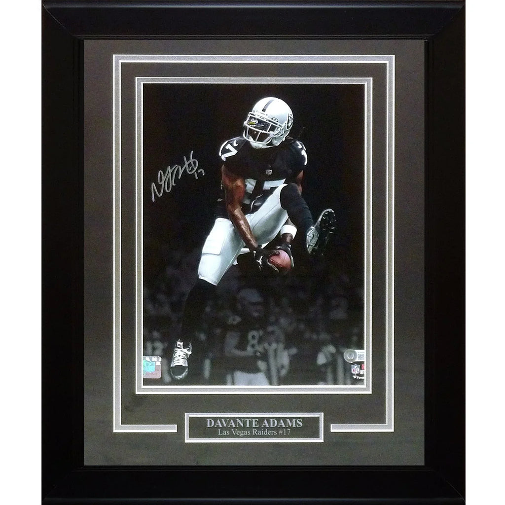 Score the ultimate fan piece with this Davante Adams Autographed Las Vegas Raiders Deluxe Framed 11x14 Photo. This stunning photo, featuring Davante Adams in action for the Raiders, is personally signed by the star player and comes with a certificate of authenticity from Beckett Authentication. A must-have for any passionate fan!