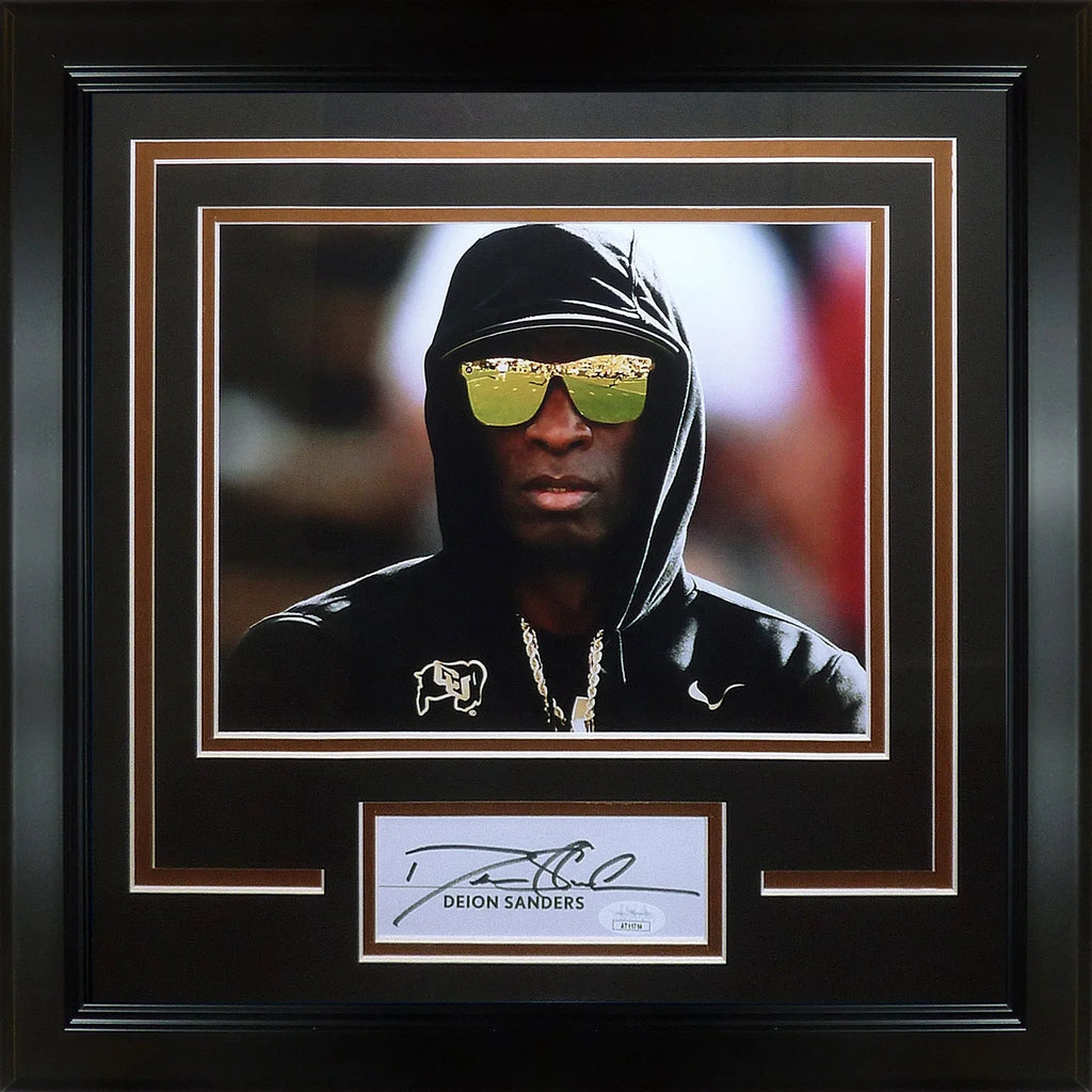 This Deion Sanders autographed Colorado Buffaloes "Signature Series" frame is a must-have for any fan or collector. The bold display of Sanders' signature on a photo of him coaching the Colorado Buffaloes will bring a touch of swag to any room. Experience the thrill of owning a piece of sports history with this Deion Sanders autographed Colorado Buffaloes "Signature Series" frame! JSA authentication guarantees its authenticity and value.