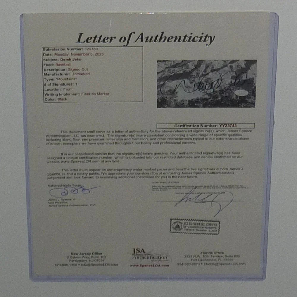 Take home a piece of baseball history with this Derek Jeter autographed deluxe framed New York Yankees floating mat poster piece! Show off your love for the Yankees and the legendary Jeter with this beautifully framed piece, complete with a JSA certificate of authenticity. The perfect addition to any fan's collection.
