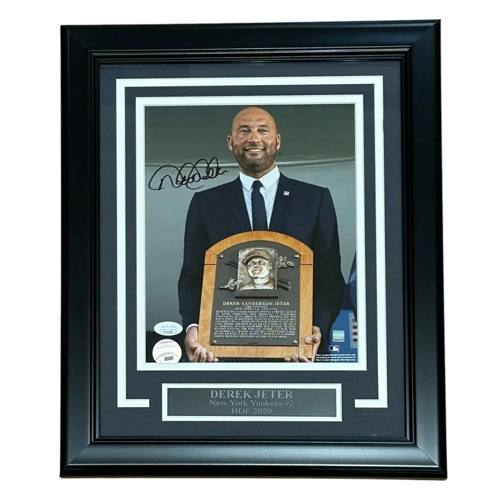 Own a piece of baseball history with this deluxe framed 8x10 photo of Derek Jeter's Hall of Fame ceremony! Featuring his authentic autograph, certified by JSA, this is a must-have for any die-hard Yankees fan. Display it proudly and relive the unforgettable moment when Jeter was inducted into the Hall of Fame.