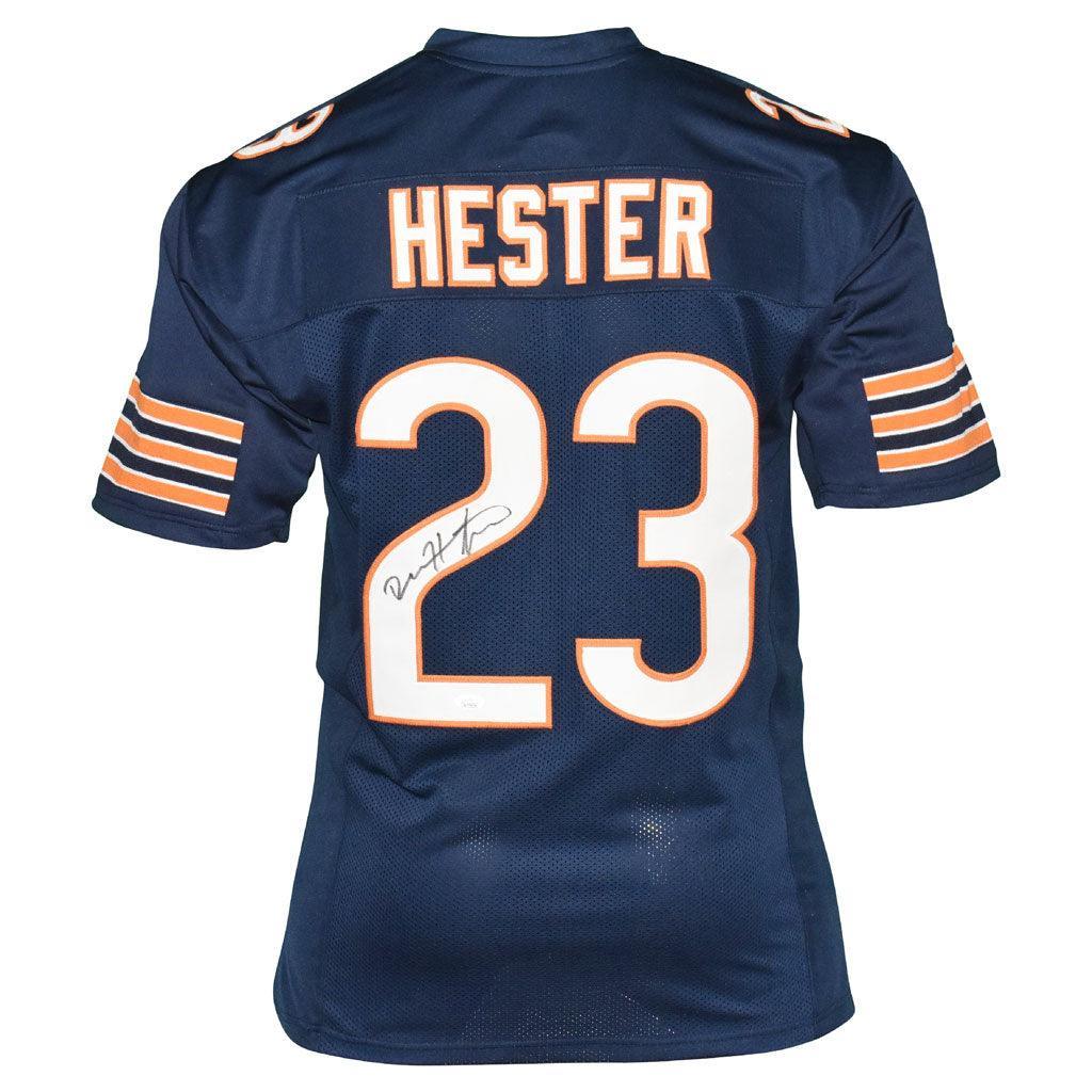 This Devin Hester autographed Chicago Bears jersey will be the prized possession of any fan or collector! Hand-signed by the legendary return specialist, this navy blue #23 custom jersey is authenticated by JSA. Display this piece of history with pride and awe.