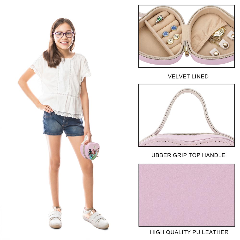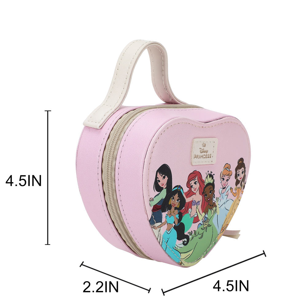 Carry your treasures like royalty with the Disney Princess Heart Jewelry Travel Bag. Perfect for any adventurer, this bag features charming heart-shaped compartments to organize and protect your precious jewels. Travel in style and keep your favorite pieces safe and sound.