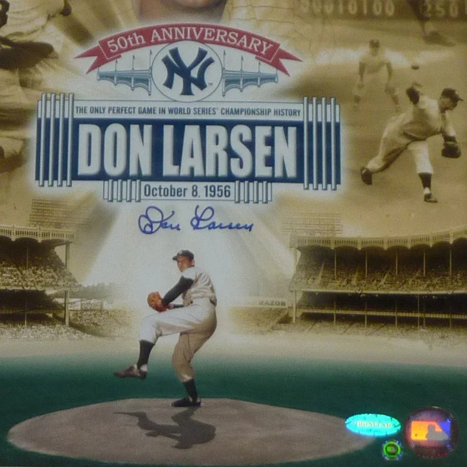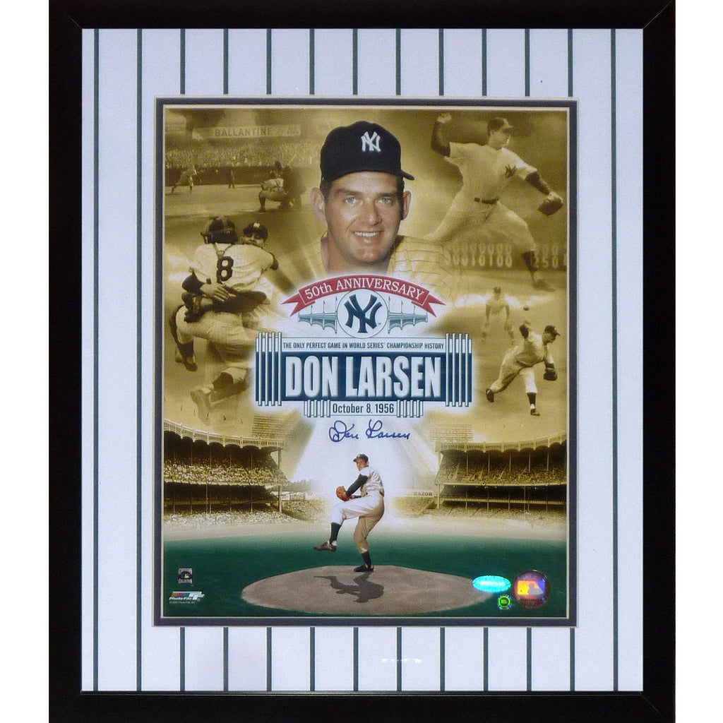 Capture a historic moment in baseball with the Don Larsen Autographed New York Yankees 50th Anniversary Framed 11x14 Photo. This exclusive collector's piece commemorates the legendary pitcher Don Larsen and his remarkable achievement, pitching a perfect game in the 1956 World Series for the New York Yankees.
