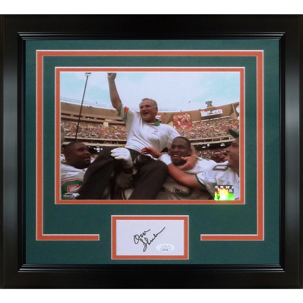 Experience the thrill of owning a valuable piece of football history with our Don Shula autographed Miami Dolphins frame! This unique item features the legendary coach's signature on a photo capturing the iconic moment of him being carried off the field in celebration. With the JSA certification, you can trust in the authenticity and value of this "Signature Series" item. It's a must-have for any die-hard fan looking to elevate their collection and relive memorable football moments.