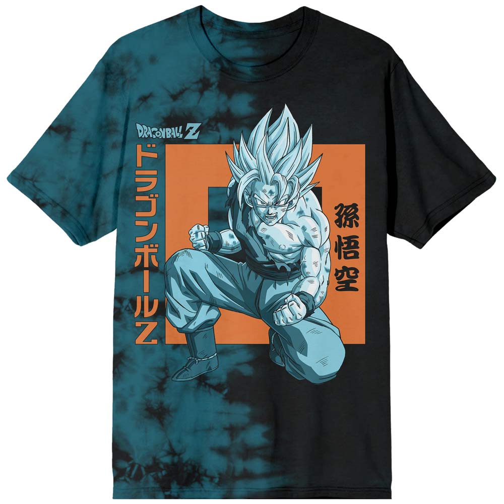 Custom Design: Perfect for Dragon Ball Z fans, this t-shirt features a big, bold graphic of Goku alongside the series’ title in Kanji—an eye-catching design that has been professionally printed against a blue-green tie dye background for long-lasting print quality.