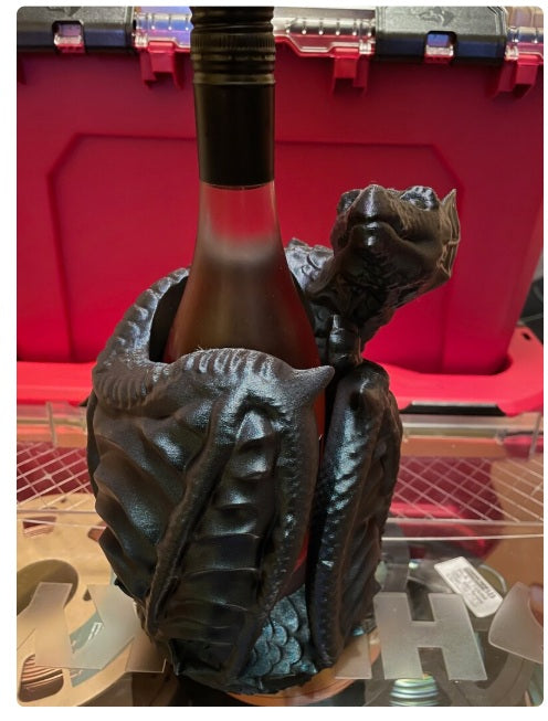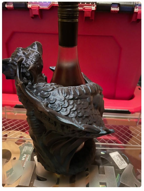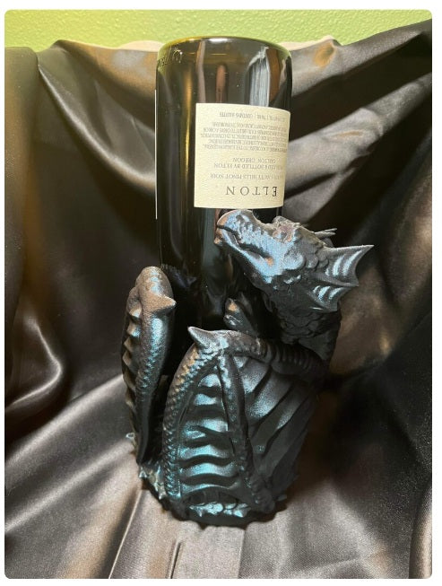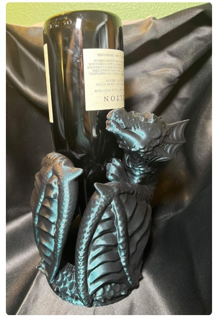 Amazing dragon themed wine bottle holder/presenter, by Kekreations. This holds standard wine bottles but can be scaled to fit abnormal sizes as well.