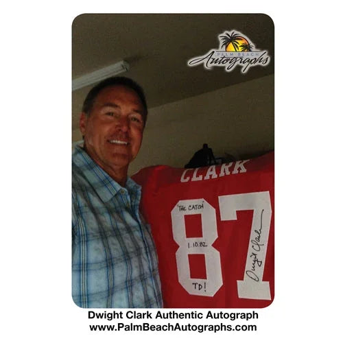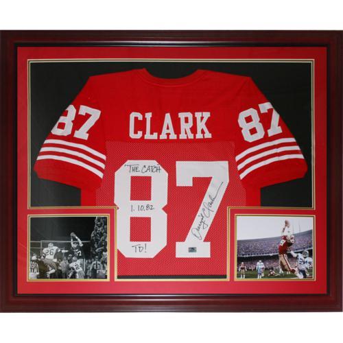 Get your hands on a piece of NFL history with this Dwight Clark autographed San Francisco 49ers jersey. This deluxe framed version includes the iconic "The Catch and Date" inscription, making it a must-have for any die-hard 49ers fan. Display it proudly and relive the unforgettable moment of Clark's legendary catch. Each signature is witnessed by a member of our staff or comes out of a private signing.