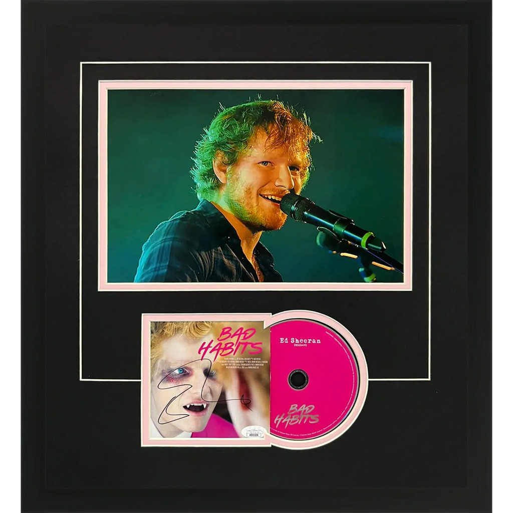 This CD cover was hand signed by Ed Sheeran and was deluxe framed with an 8x10 Photo. It is accompanied by a Certificate of Authenticity from JSA. A tamper-evident hologram will be affixed to the item. Each signature is witnessed by a member of our staff or comes out of a private signing.