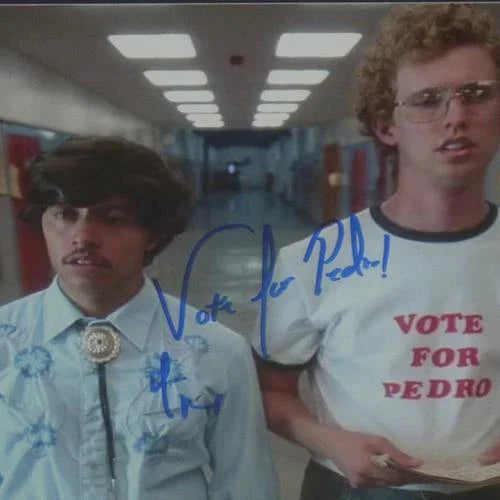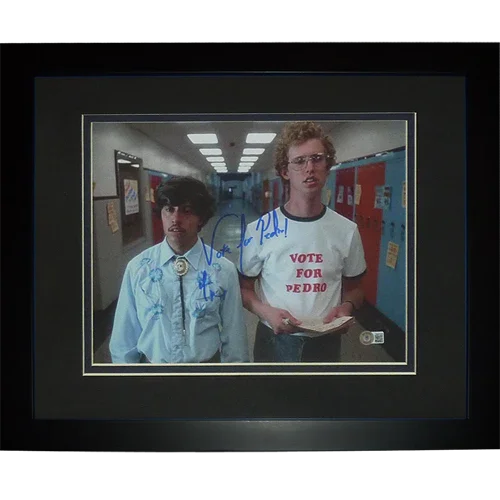 Get ready to relive all your favorite scenes from Napoleon Dynamite with this deluxe framed 11x14 photo, autographed by the hilarious Efren Ramirez himself! Complete with the iconic "Vote for Pedro" slogan, this piece is certified by Beckett and is sure to make a perfect addition to any fan's collection. Don't miss out on this must-have piece of movie memorabilia!
