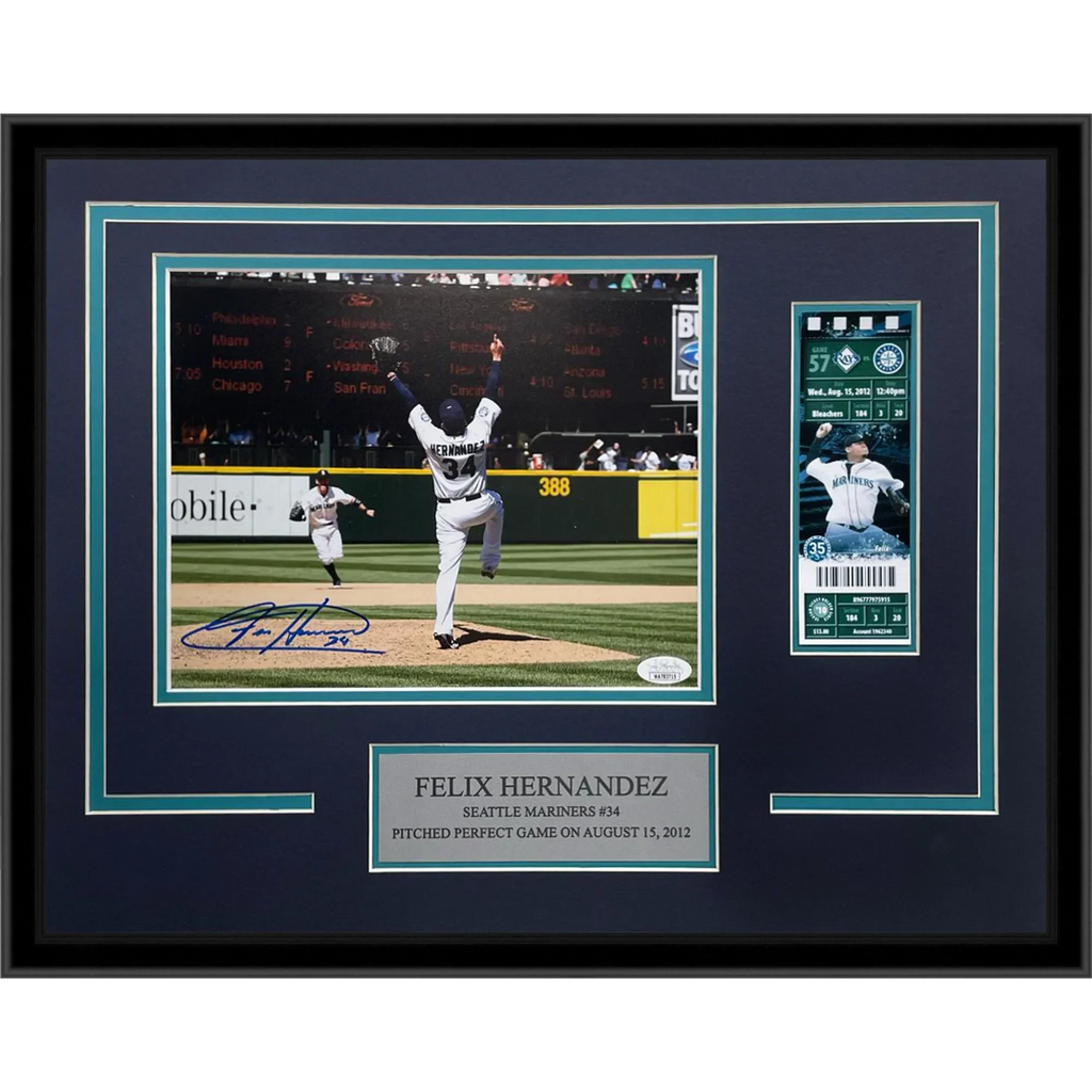 Experience the thrill of Felix Hernandez's perfect game all over again with this autographed Seattle Mariners 8x10 photo. This framed piece comes with a replica game ticket and a JSA certificate of authenticity. Relive the magic of the King's incredible feat with this unique piece for any Mariners fan's collection.