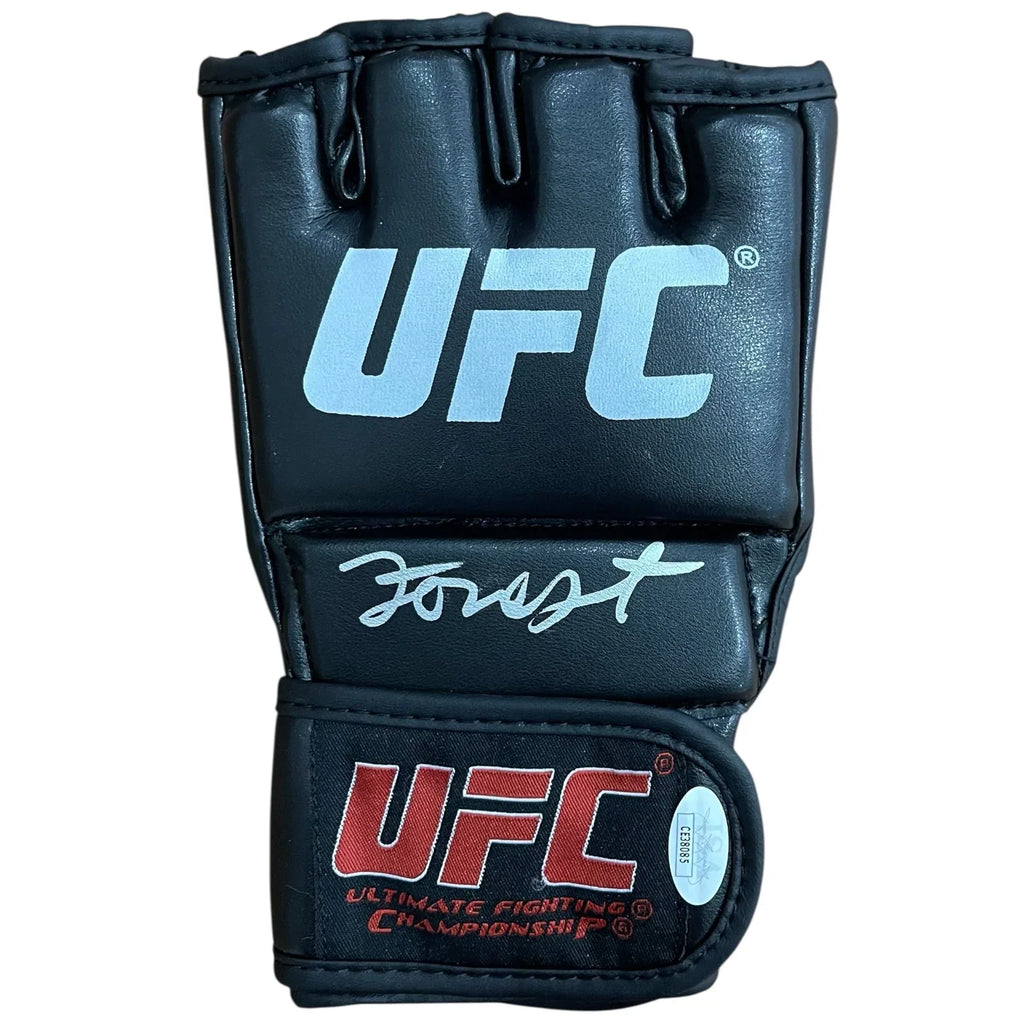 Own a piece of UFC history with this Forrest Griffin Autographed UFC Fighting Glove! With a certificate of authenticity from JSA, this glove is a must-have for any MMA fan. Display it proudly in your home or office and show your passion for the sport. Limited quantities available!