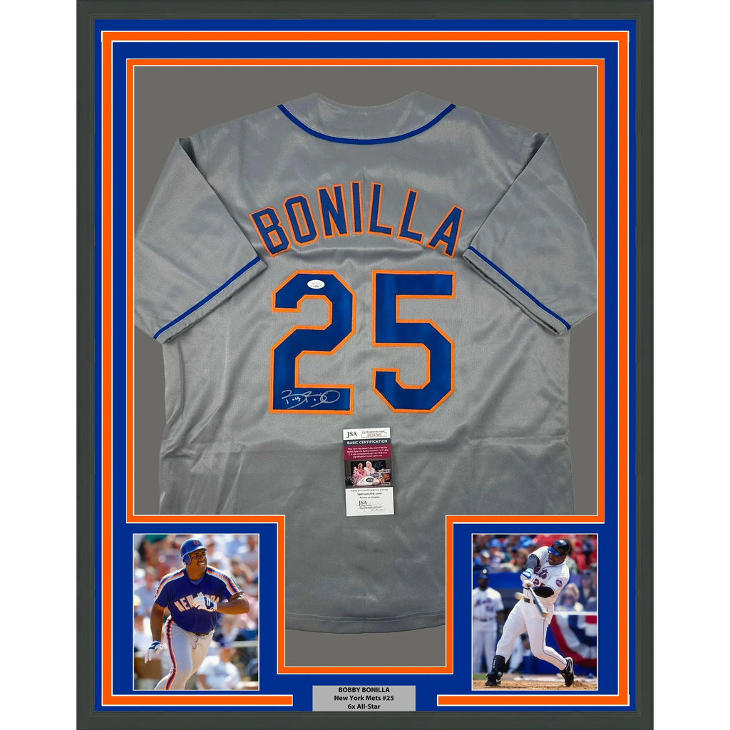 Framed Autographed/Signed Bobby Bonilla 35x39 New York Grey Baseball Jersey JSA COA
