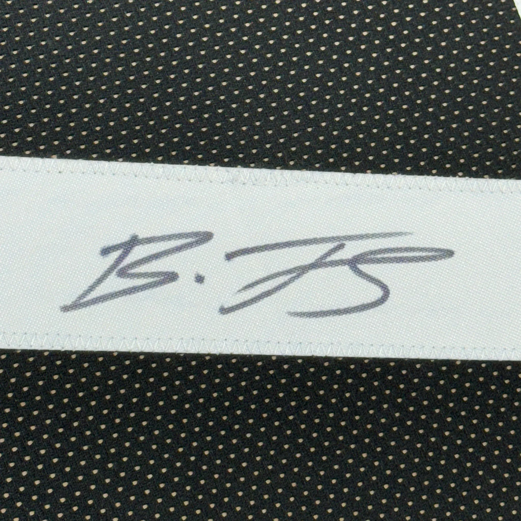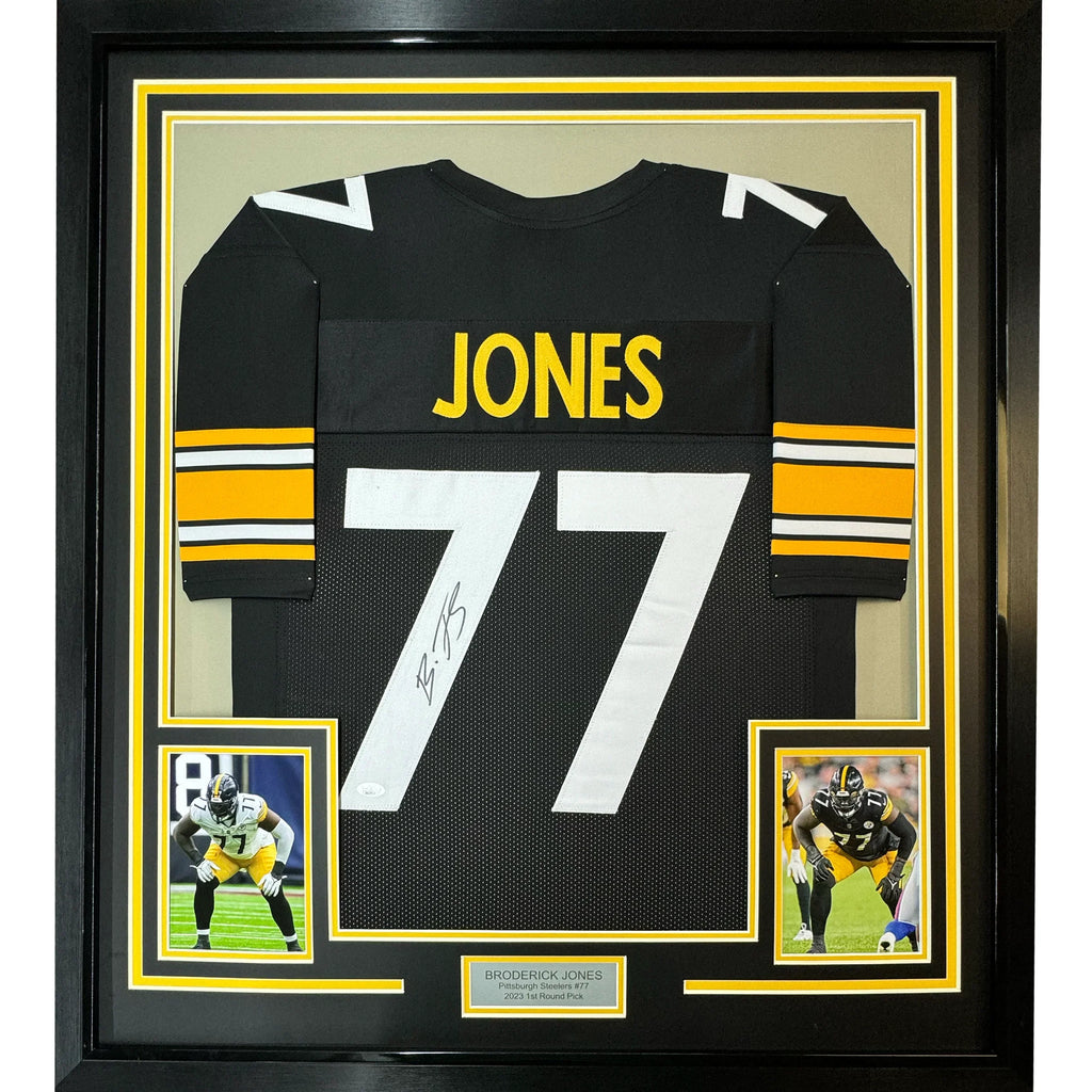 Framed Autographed/Signed Broderick Jones 35x39 Pittsburgh Black Football Jersey JSA COA