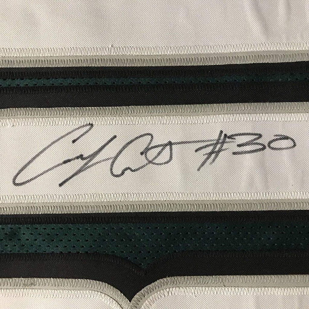 Framed Autographed/Signed Corey Clement 35x39 Philadelphia Eagles Green Football Jersey JSA COA