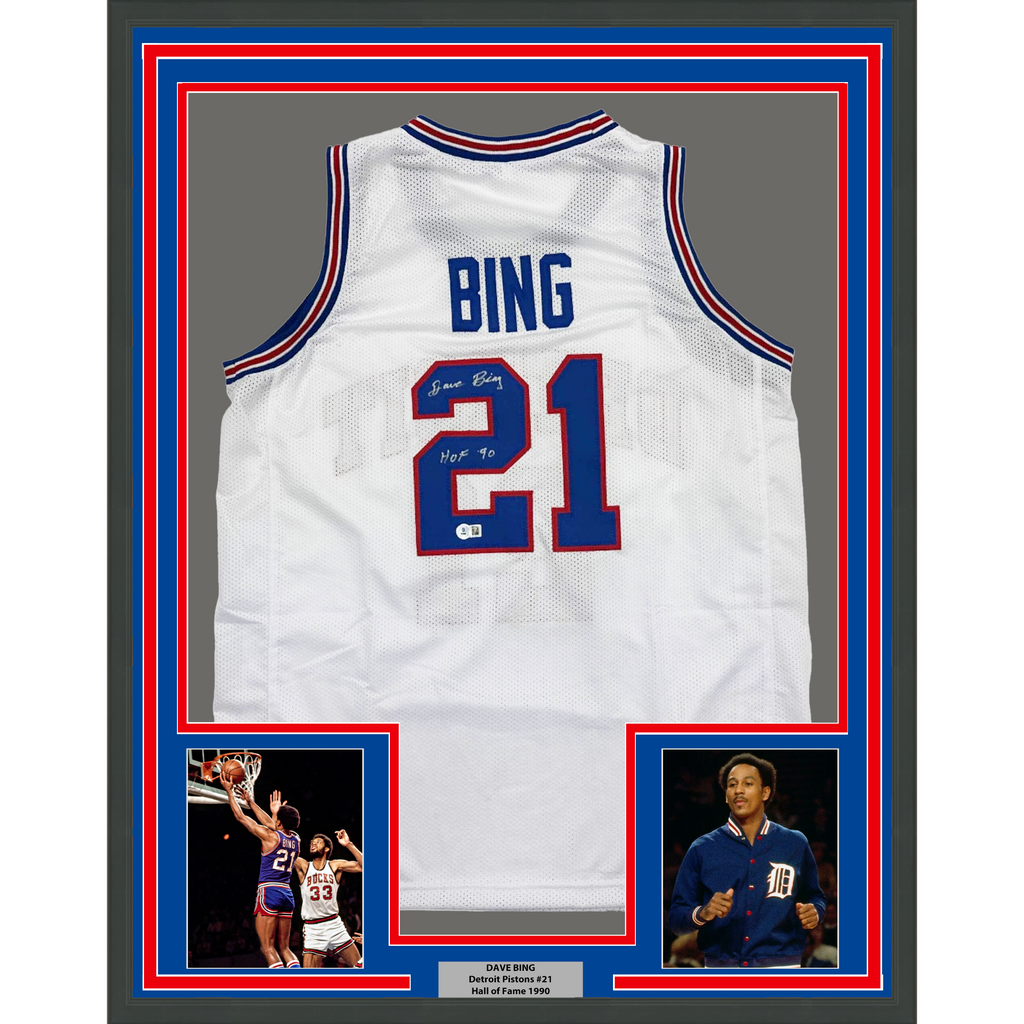 Framed Autographed/Signed Dave Bing HOF 90 35x39 Detroit White Basketball Jersey Beckett BAS COA