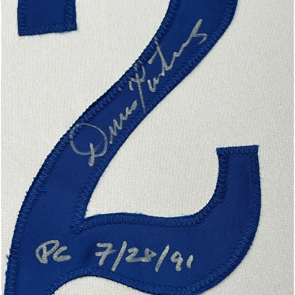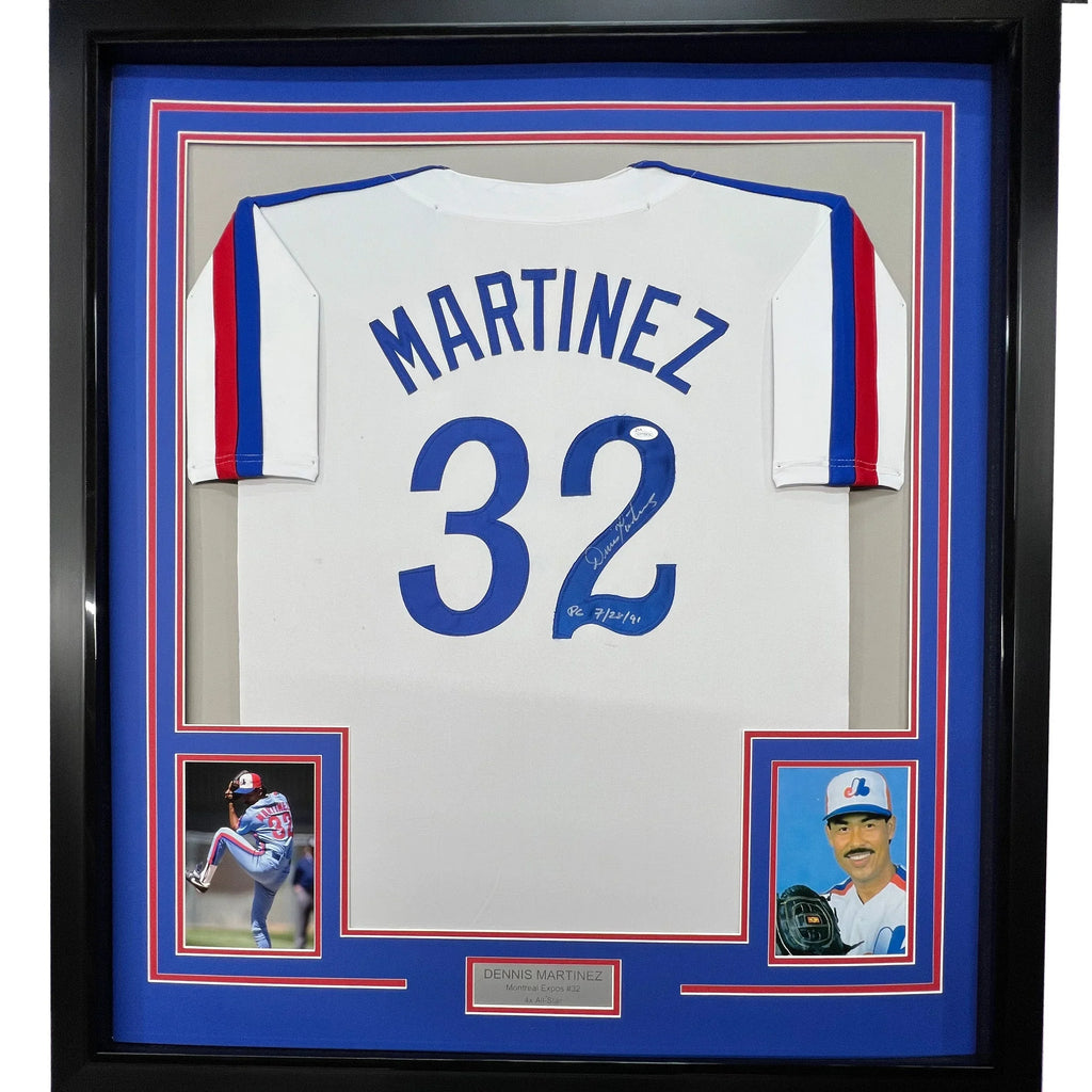 Framed Autographed/Signed Dennis Martinez 35x39 Montreal White Baseball Jersey JSA COA