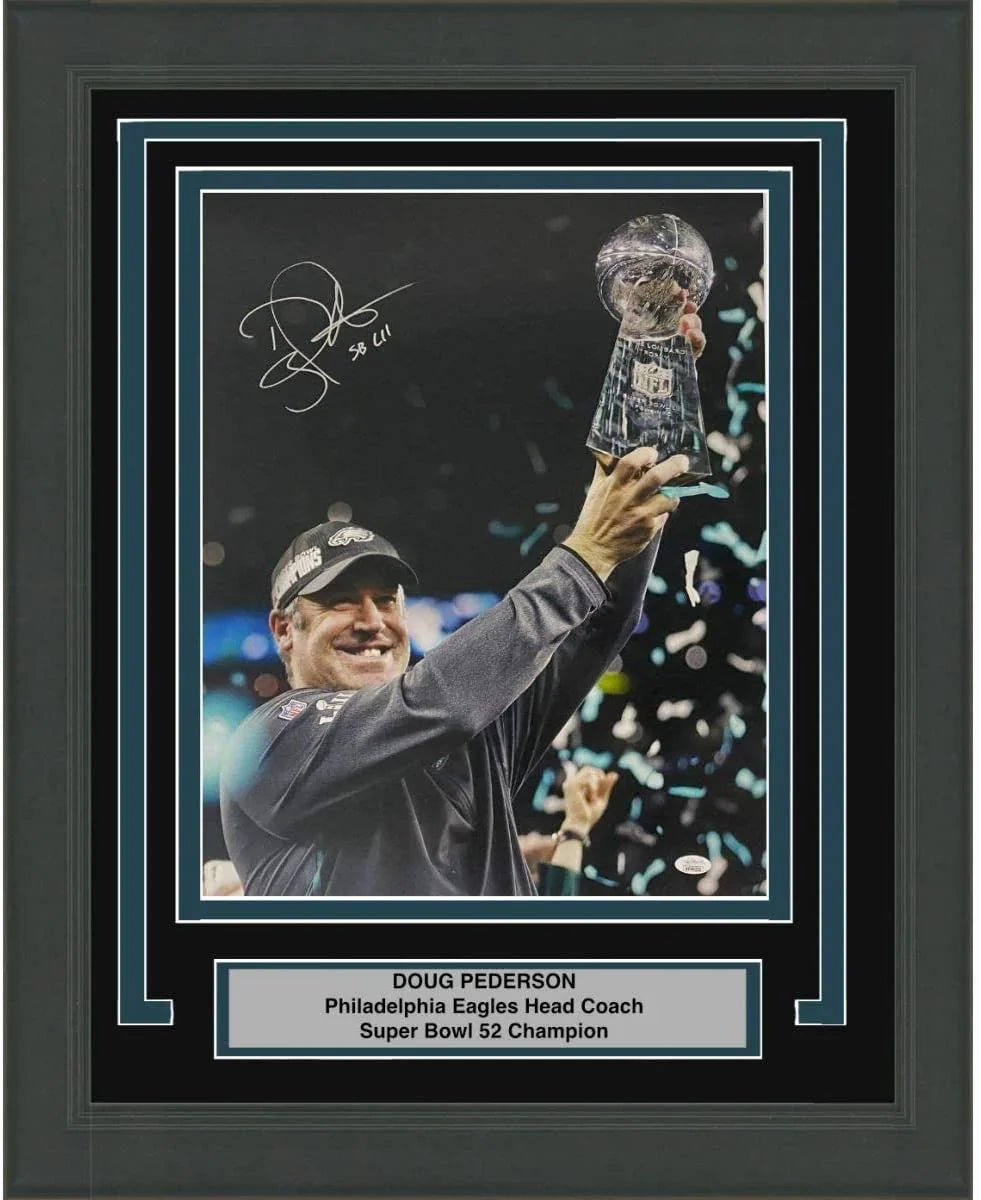 Framed Autographed/Signed Doug Pederson Inscribed SB LII Philadelphia Eagles Super Bowl 52 Champions 16x20 Football Photo JSA COA