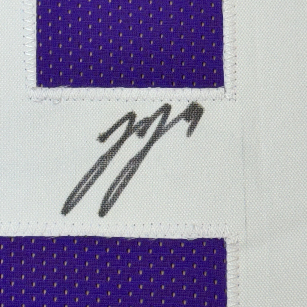 Framed Autographed/Signed J.J. JJ McCarthy 35x39 Minnesota Purple Football Jersey Beckett BAS COA