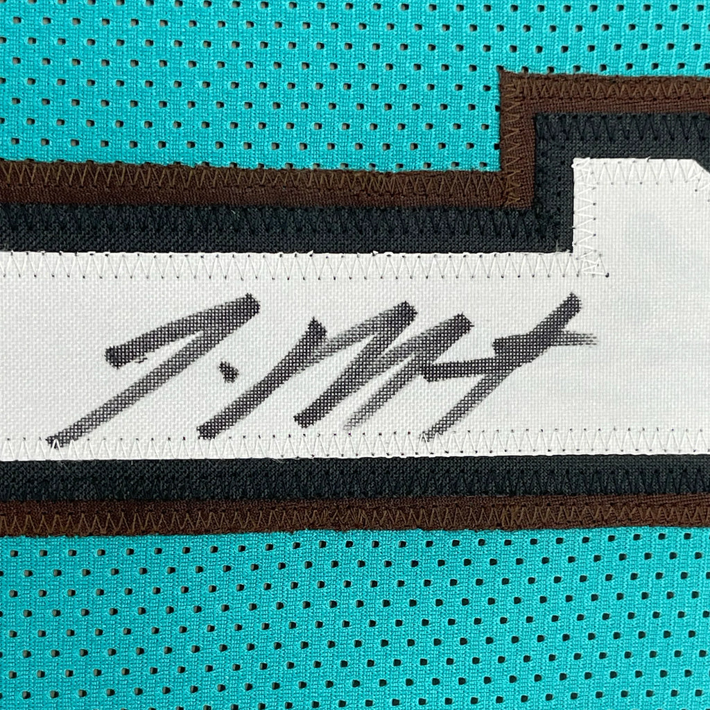 Framed Autographed/Signed Ja Morant 35x39 Memphis Teal Basketball Jersey JSA COA