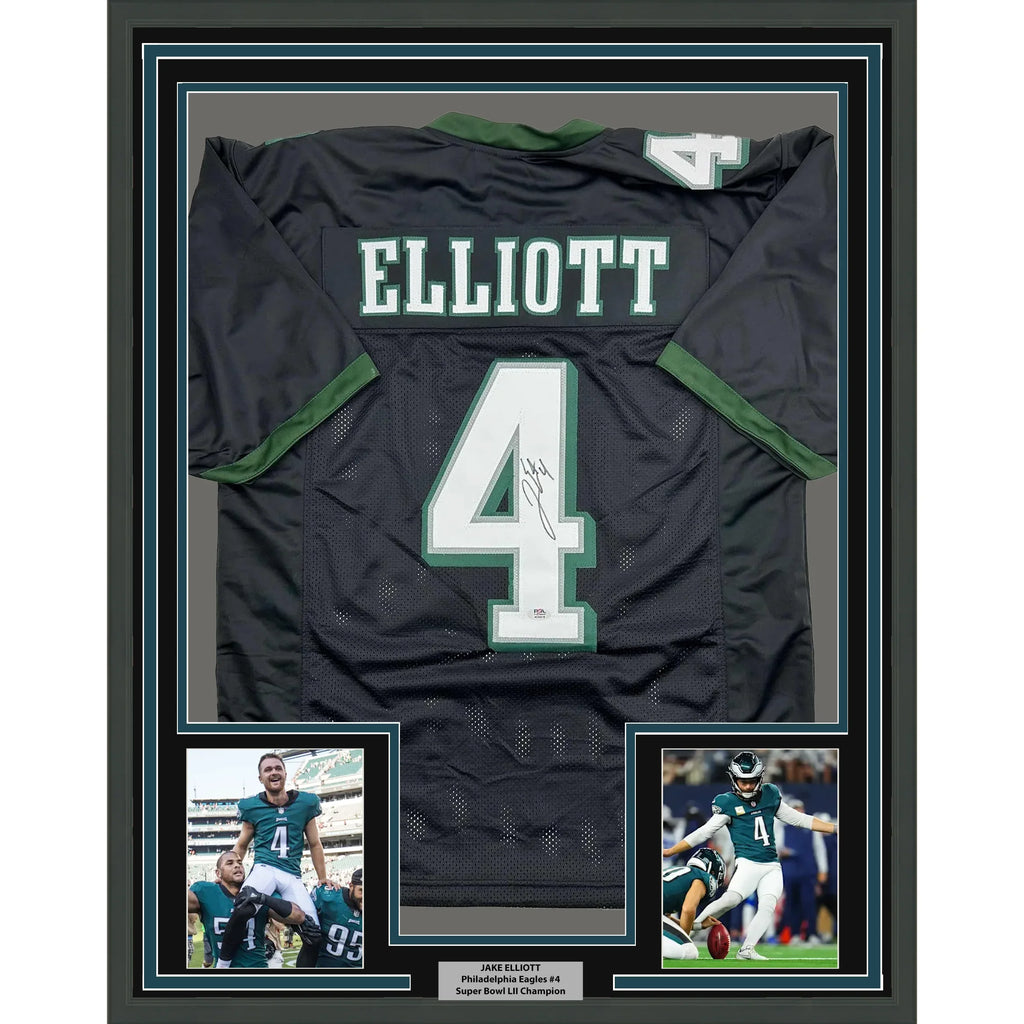 Framed Autographed/Signed Jake Elliott 35x39 Philadelphia Black Football Jersey PSA/DNA COA