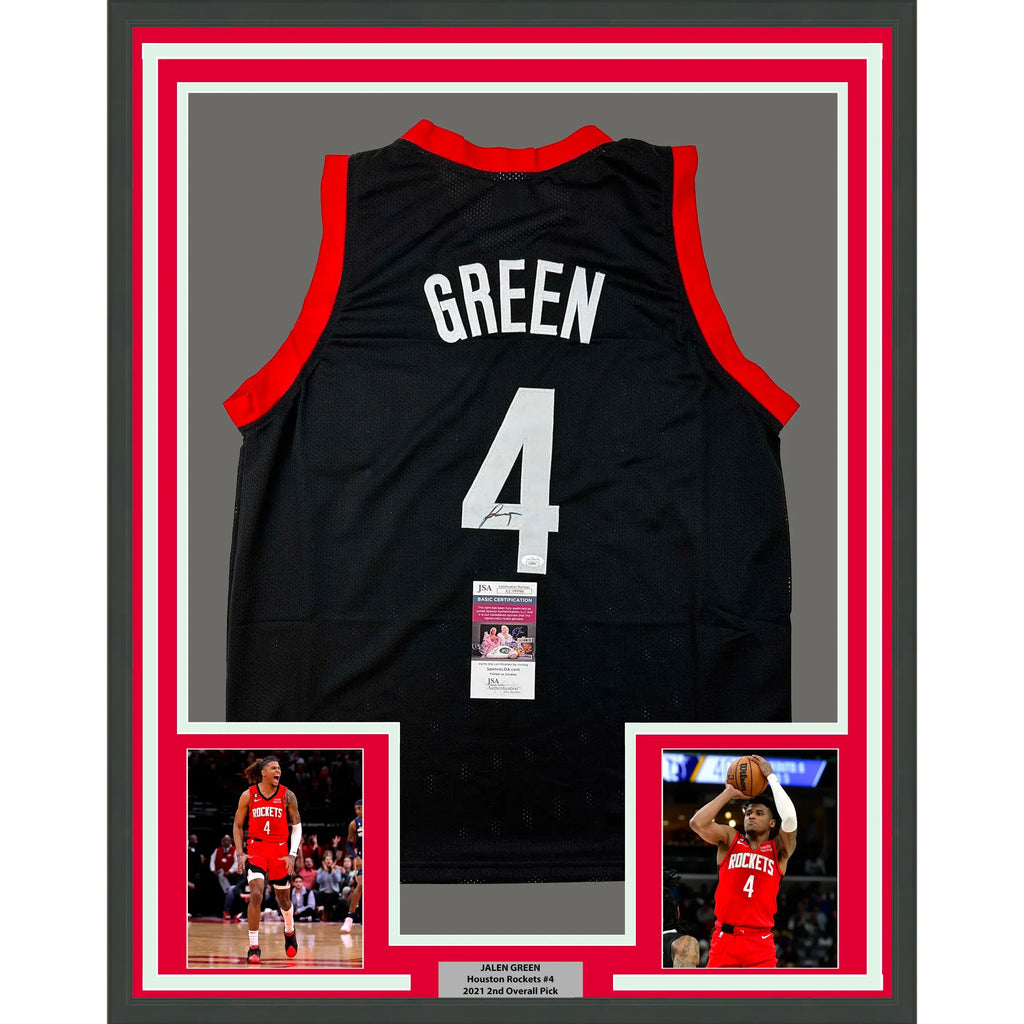 Framed Autographed/Signed Jalen Green 35x39 #4 Houston Black Basketball Jersey JSA COA