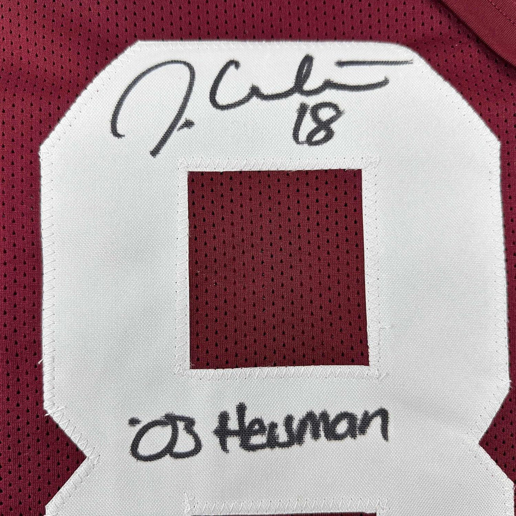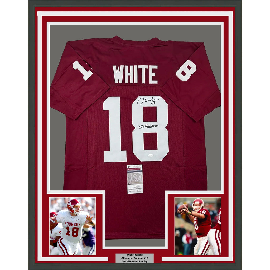 Framed Autographed/Signed Jason White 35x39 03 Heisman Oklahoma Maroon College Football Jersey JSA COA