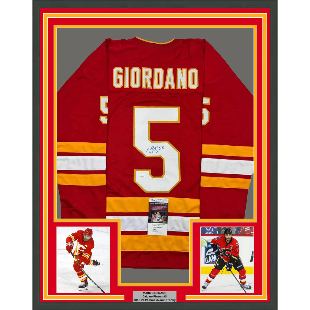 Framed Autographed/Signed Mark Giordano 35x39 Calgary Red Hockey Jersey JSA COA