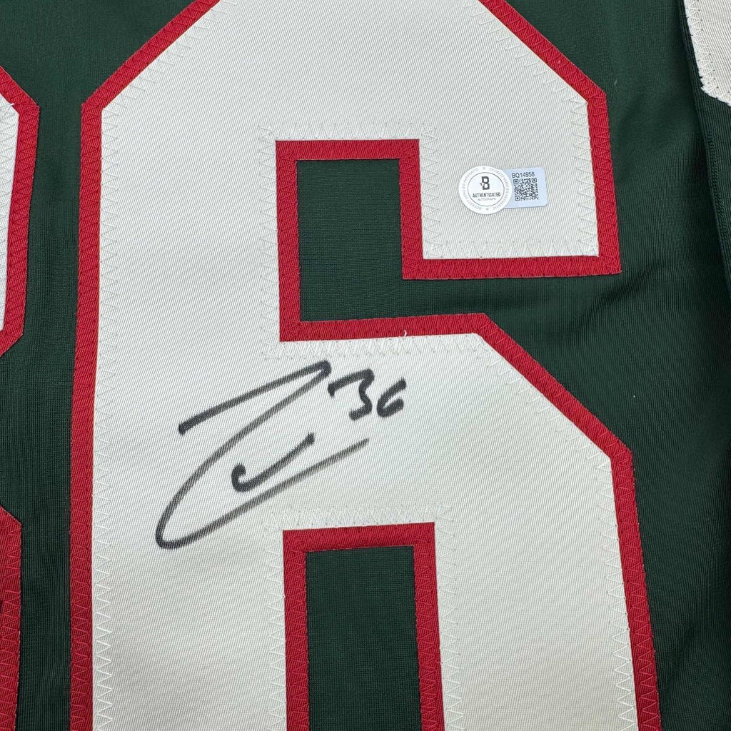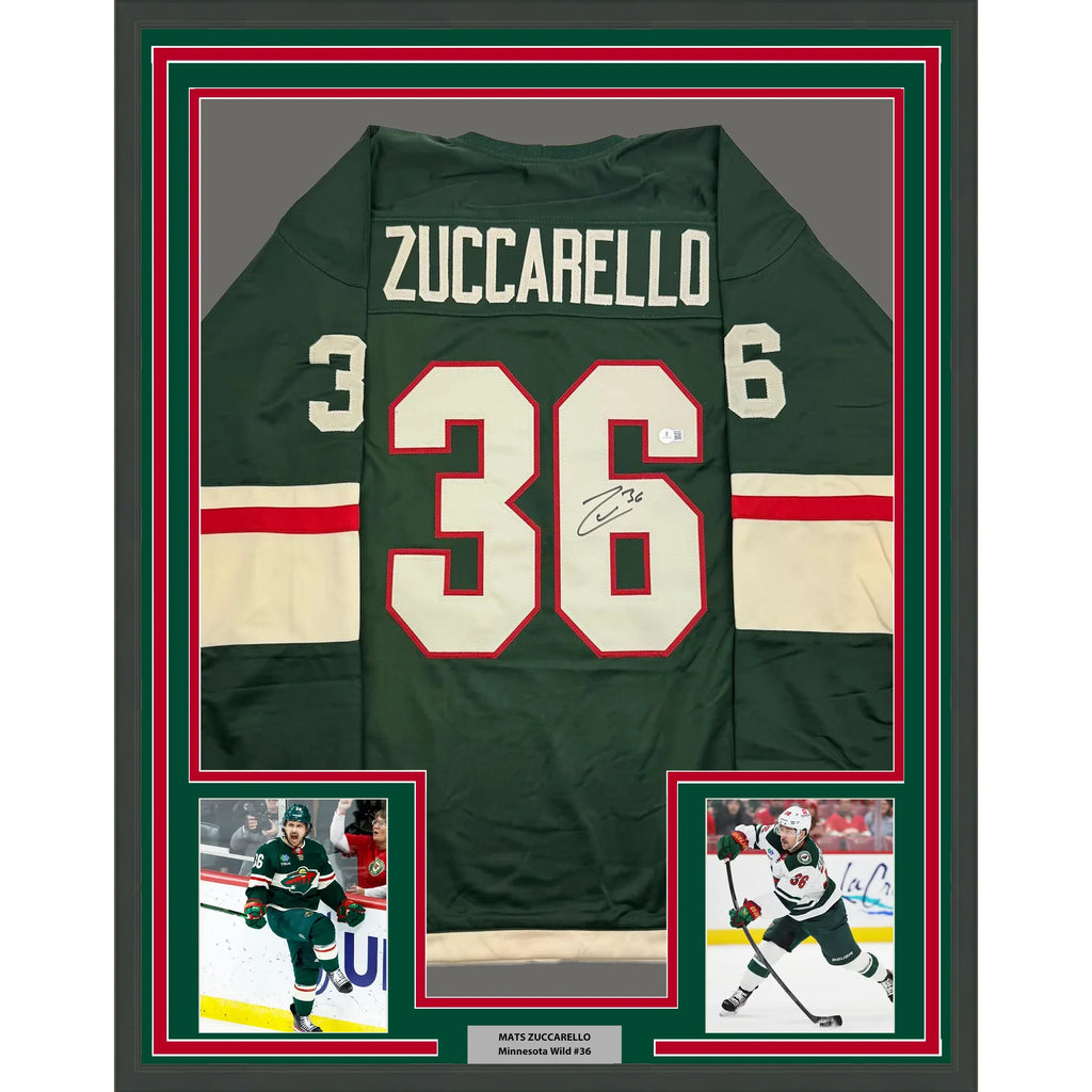 Framed Autographed/Signed Mats Zuccarello 35x39 Minnesota Green Hockey Jersey Beckett BAS COA
