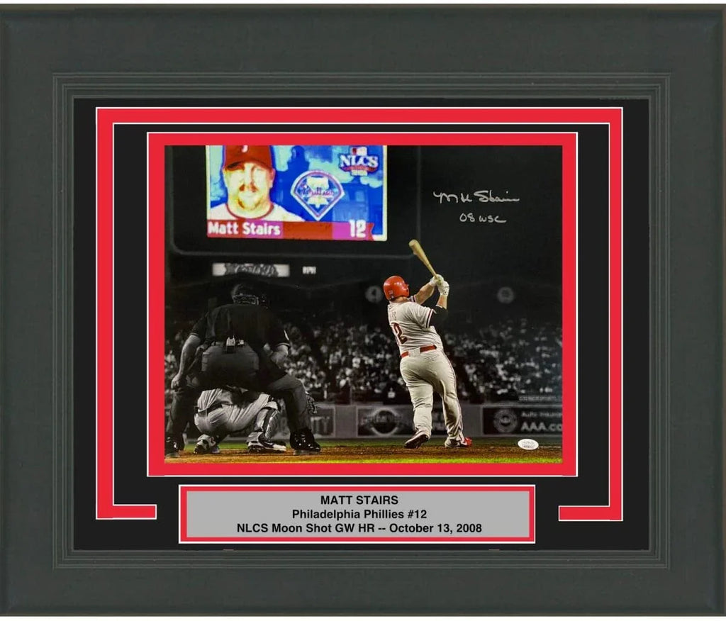 Framed Autographed/Signed Matt Stairs 08 WSC Moon Shot Philadelphia Phillies 16x20 Baseball Photo JSA COA