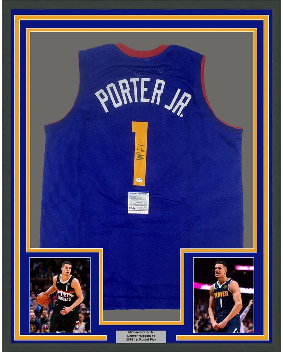 Framed Autographed/Signed Michael Porter Jr. 35x39 Denver Royal Blue Basketball Jersey PSA/DNA COA