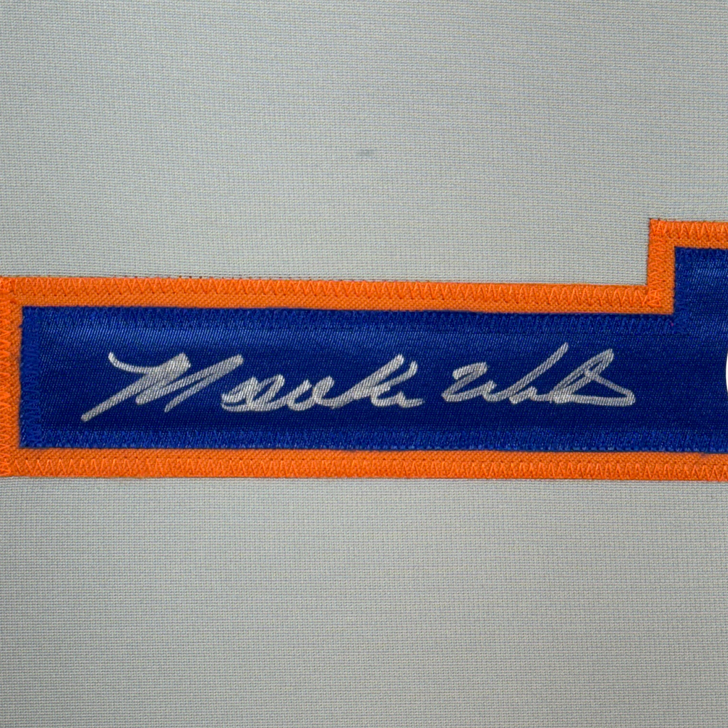 Framed Autographed/Signed Mookie Wilson 35x39 New York Grey Baseball Jersey JSA COA