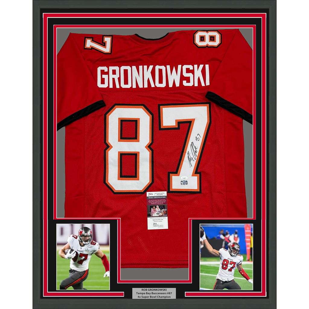 Framed Autographed/Signed Rob Gronk Gronkowski 35x39 Tampa Bay Red Football Jersey JSA COA