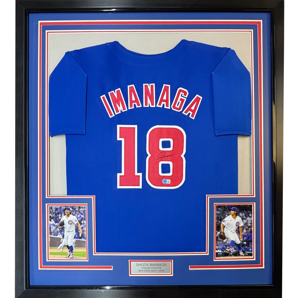 Framed Autographed/Signed Shota Imanaga 35x39 Chicago Blue Baseball Jersey Beckett BAS COA